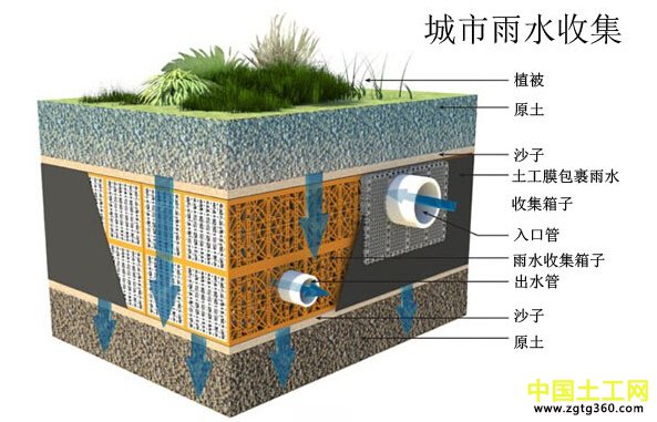 雨水蓄水模块采用聚丙烯材料制作成不同规格尺寸的网格状平板,通过拼装成模块化尺寸的箱体,将每一个箱体码放成为连续的雨水“矩阵”池。因为其网格化透空的结构,材料的结构占用空间不到5%,即模块的蓄水空间达到95%以上,雨水可以在其中自由交换流动。雨水蓄水模块直接安装在地面以下,不占用地表使用空间,隐蔽性好,可阻隔阳光照射,且模块材料可靠,可使雨水长期储存而不发生变质。模块组合式拼装,简单灵活且结构坚固,单个模块承压能力达30吨/平米,安全可靠。雨水蓄水模块的安装工艺流程:基础处理→无纺布/HDPE土工膜的铺装→模块的定位与码放→排水板的安装→管道与模块的连接→基础回填及夯实→成品保护。雨水蓄水模块工作原理:雨水落到地面后,经过初期的截污、弃流处理,截留雨水中较大悬浮物与漂浮物,可以防止水泵、排水管以及其他处理设备堵塞。雨水汇集并储存到模块蓄水池后,经过自然沉淀使雨水中的悬浮物质(主要是可沉固体)在重力作用下沉淀,从而雨水分离,使水得到澄清。 储存在雨水蓄水模块中的雨水,经过其他雨水处理设备的过滤、消毒后可用于浇洒路面、水景补水,浇灌草坪。也可通过蓄水池将雨水下渗,达到补充地下水资源,改善生态环境的目的。