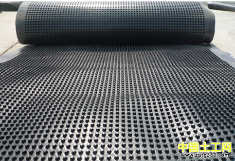 圆锥突台的顶面胶接一层过滤土工布,以阻止泥土微粒通过,从而避免排水通道阻塞使孔道排水顺畅。 传统的排水方式使用砖石瓦块作为导滤层、使用较多的鹅卵石或碎石作为滤水层、将水排到指定地点。而用排水板取代鹅卵石滤水层来排水则省时、省力又节能、节省投资、还能降低建筑物的荷载。